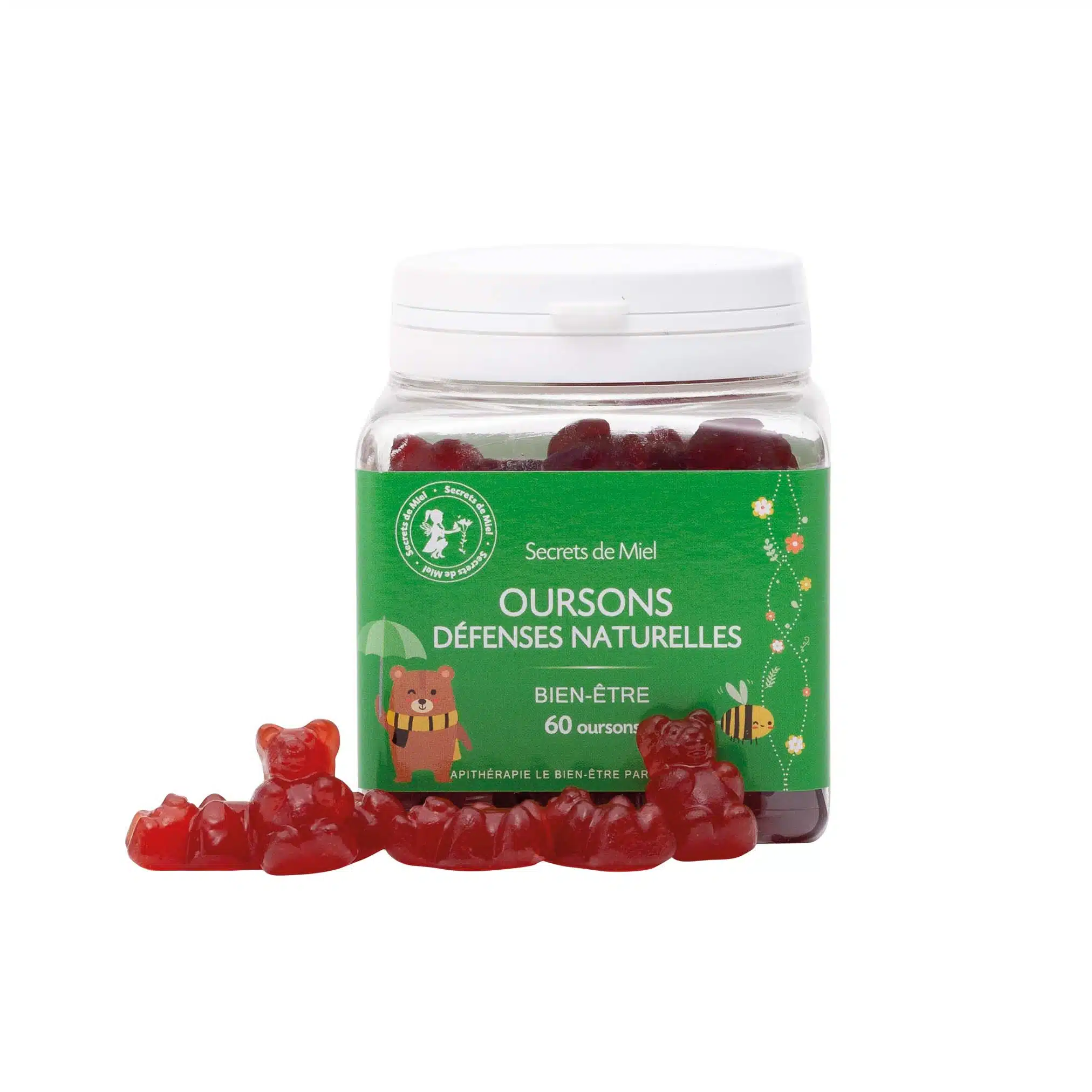 Des oursons délicieux, naturels, sans gélatine ni colorant et très très peu sucrés formulés avec Gelée royale et Acérola, pour booster la croissance, l’appétit et réduire la fatigue de vos petits loups. (1 ourson par jour le matin, dès que l’enfant sait mâcher) |
