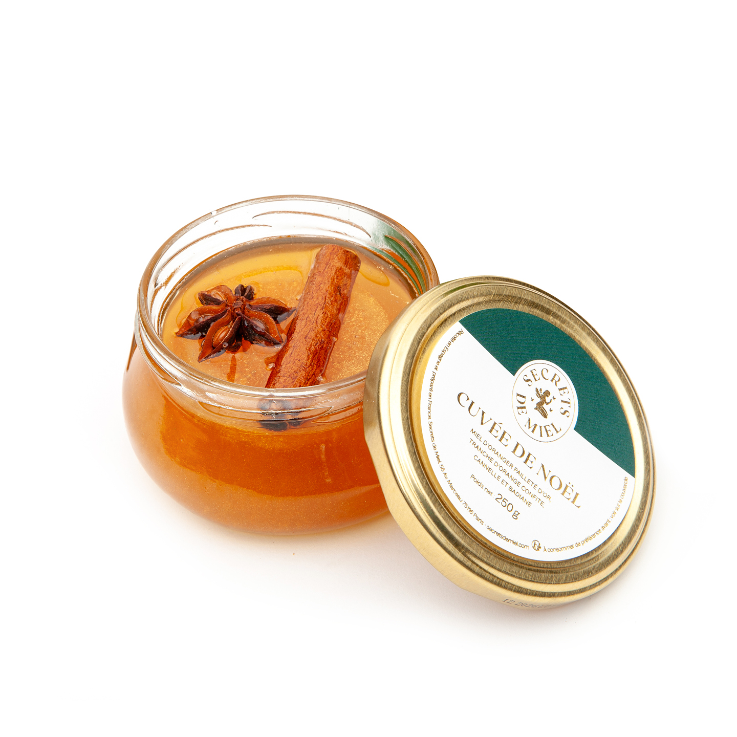 Miel d’Oranger pailleté d’or (2),tranche d’Orange confite, Cannelle et Badiane