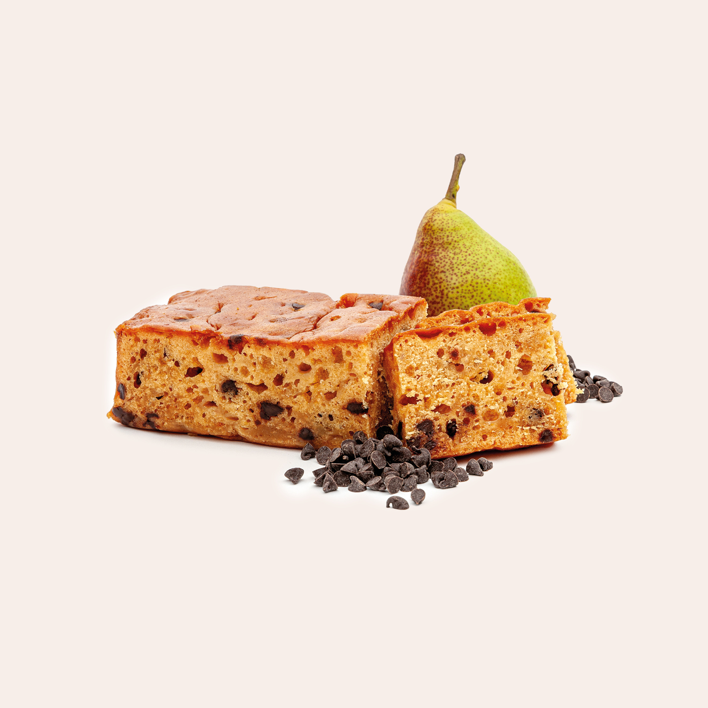 Ingrédients : FARINE DE BLE, OEUFS, MIEL 14,2 %, HUILE DE COLZA, BEURRE CONCENTRE, SUCRE, pépites Poire pectine 5,5% (jus de Poire à base de concentré, sucre, jus de Citron à base de concentré, pectine E440I, arôme naturel), pépites de Chocolat 5,5% (sucre, pâte de cacao, beurre de cacao, émulsifiant : lécithines (SOJA), vanilline ; Peut contenir : LAIT, alcool (spirit rhum léger vanillé), sorbitol (stabilisant), amidon de maïs, poudre à lever (pyrophosphate acide de sodium E450i, bicarbonate de soude E500i, amidon de blé), SEL, xanthane gomme, Pulvérisation d’alcool.