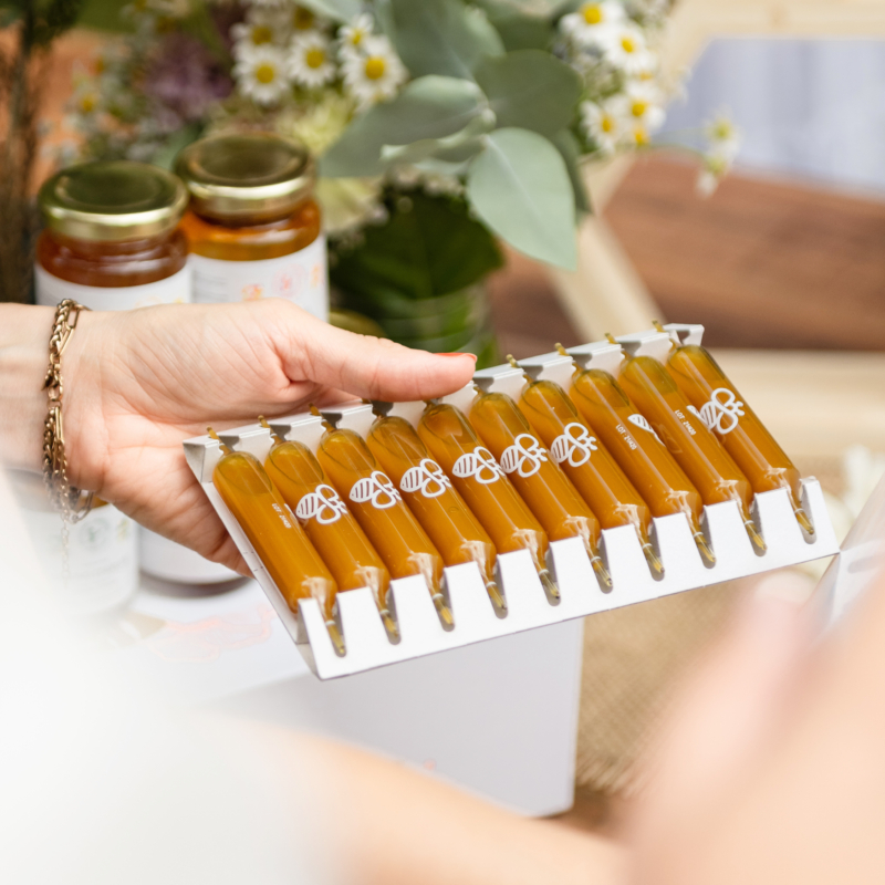Tous les trésors de la ruche dans une ampoule ! Un cocktail 100% naturel pour garder ou retrouver votre vitalité, durablement. Votre allié lors des périodes de surmenage, des changements de saisons ou dès que vous ressentez une baisse d’énergie ! Avec ce cocktail, vous êtes prêts à tout affronter !