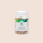 Liste des ingrédients pour 2 gélules végétales : Extrait d’Artichaut feuille 334 mg, Extrait de Bardane racine 250 mg, Gélule végétale, Mélange de 3 probiotiques 60 mg (soit 3 milliards de germes : Lactobacillus plantarum-Lactobacilluns reuteri-Lactobacillus rhamnosus), extrait de Propolis 40 mg, Extrait de Poivre noir graine 30 mg, Extrait Ortie feuille 20 mg, Bisglycinate de Zinc 15 mg (Zinc élément 3 mg soit 30% AR*), Stéarate de magnésium.