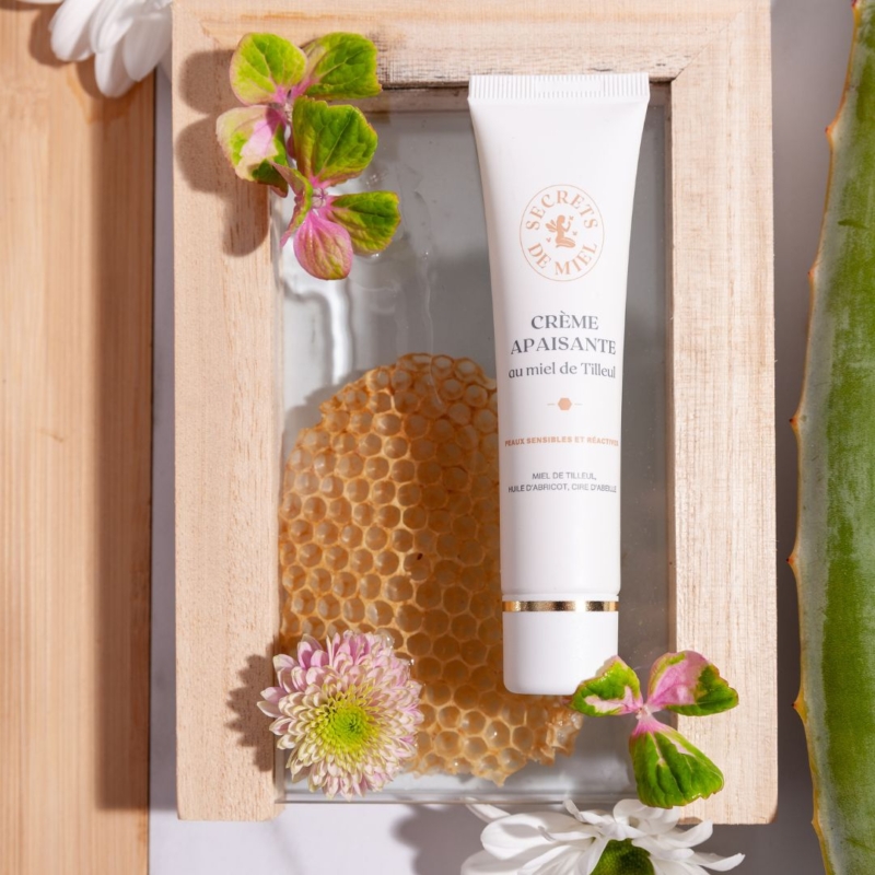 Appliquez chaque matin sur une peau préalablement nettoyée et sèche. La Crème Apaisante au miel de Tilleul hydrate, protège et apaise les peaux sensibles, sèches et sujettes aux rougeurs !