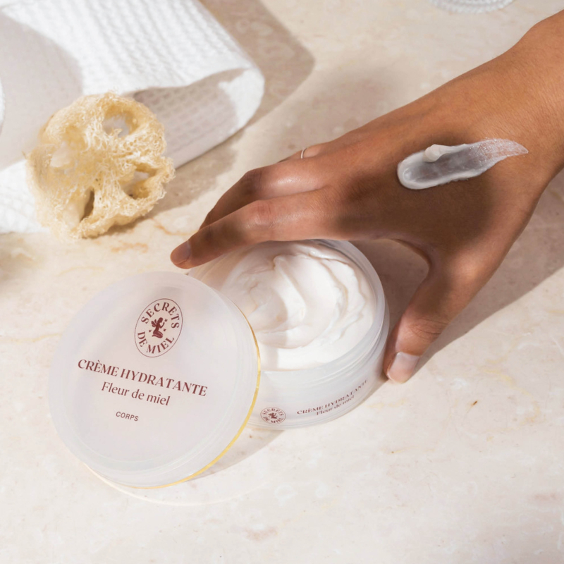 Pour une efficacité optimale de notre Crème Corps Hydratante, exfoliez votre peau deux fois par semaine et utilisez notre Lait de douche Fleur de Miel. Prenez une noisette de crème au creux de votre main pour chaque partie de votre corps puis effectuez des mouvements circulaires. L’auto-massage va permettre de favoriser l’absorption rapide du produit et stimuler la microcirculation sanguine.
