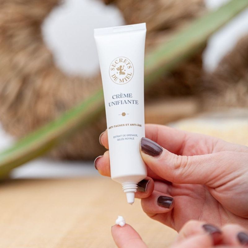 La Crème Visage Unifiante Anti-taches et anti-âge est formulée avec 97% d’ingrédients d’origine naturelle. Les % restants assurent l’innocuité, la stabilité et la sensorialité du produit.