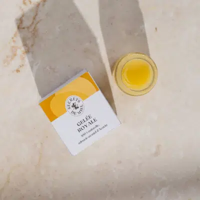 - Gelée Royale : réputée pour lutter contre le stress et le vieillissement cellulaire, et pour renforcer les défenses naturelles. Le plein de vitamines pour booster le moral, la concentration et l’organisme.