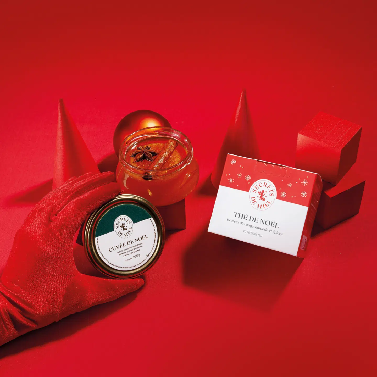 1 x Cuvée de Noël Miel d’Oranger (origine Espagne) pailleté d’or, tranche d’Orange confite, Cannelle et Badiane (250 g)