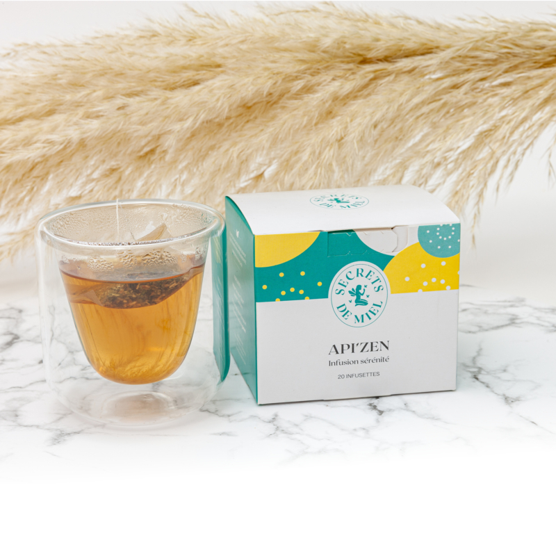 Associez notre infusion Api’Zen à notre Méli’Calm pour des journées sans stress et des nuits paisibles !