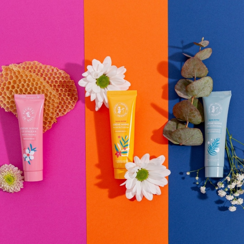 • Crème mains au miel de Printemps (30 ml) : adoucissante et hydratante.