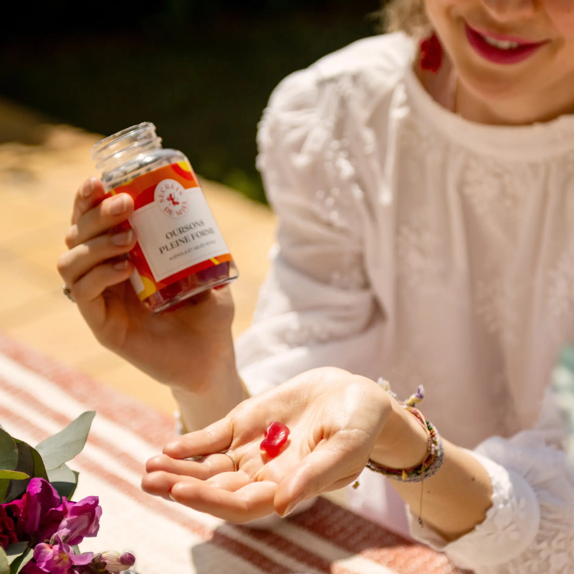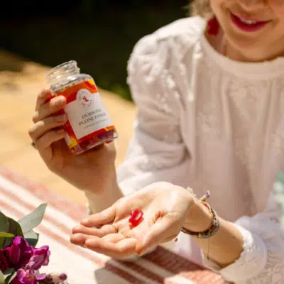 Ces gommes sont enrichies en Gelée Royale, Acérola et Vitamine C, reconnues pour leurs vertus protectrices, antioxydantes et apaisantes. Cette recette naturelle assura un métabolisme énergétique normal, un fonctionnement normal du système nerveux et une fonction normale des os.