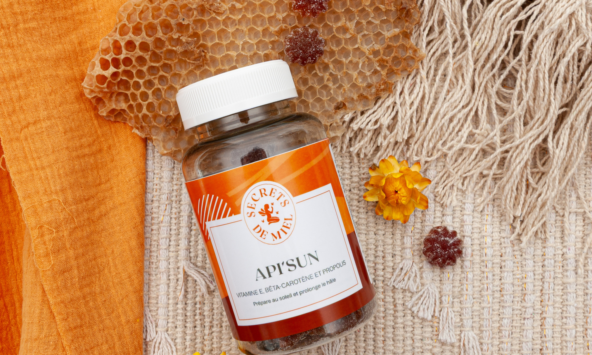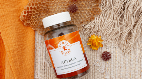 Nos délicieux gummies naturels et riches en Vitamines, Cuivre, Bêta-carotène et Propolis embellissent votre peau et la préparent au soleil. Les vitamines A et B2 contribuent au maintien d’une peau normale. Les vitamines B2 et E, le sélénium et le cuivre contribuent à protéger les cellules contre le stress oxydatif. Le cuivre contribue à la … Lire la suite de Api’ Sun