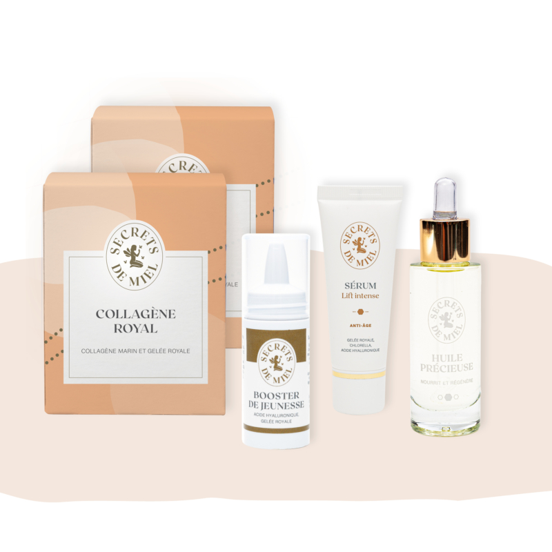 • 1 Pro’Collagène (156 g) ou 2 boites de Collagène Royal (2 x 14 sachets)