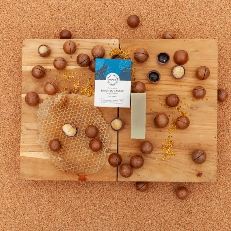 Le Savon de rasage au miel d’Eucalyptus est formulé avec des ingrédients d’origine naturelle.