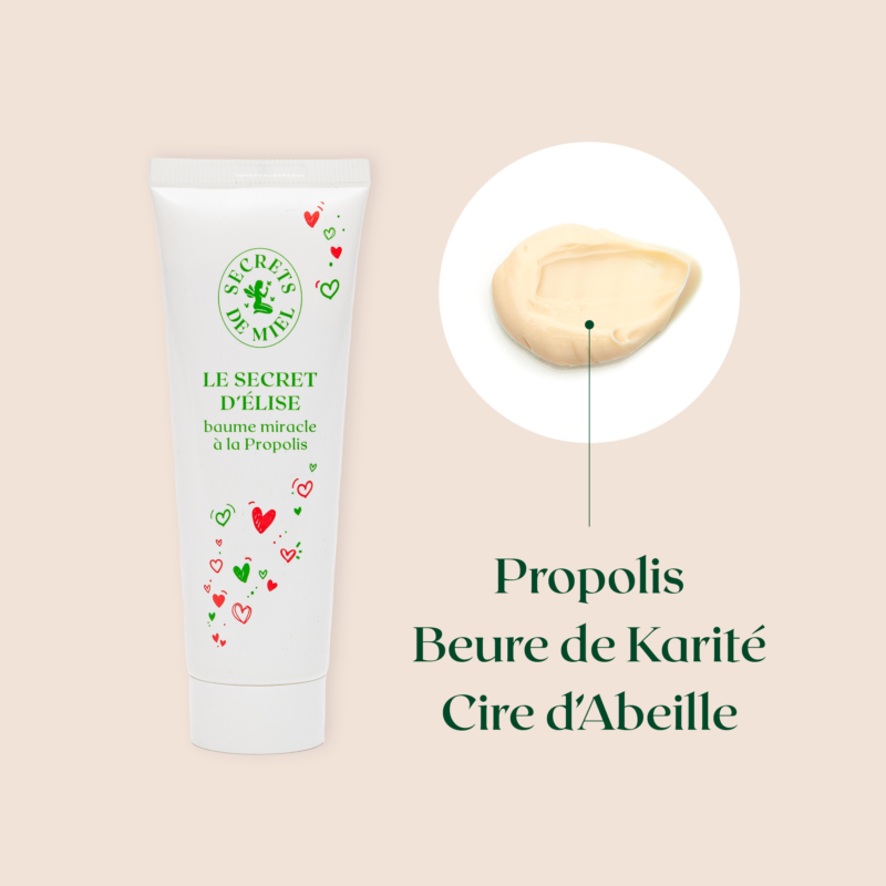 Sa formule unique, hyper-concentrée en Propolis, beurre de Karité et cire d’abeille apaise, répare et nourrit votre peau.