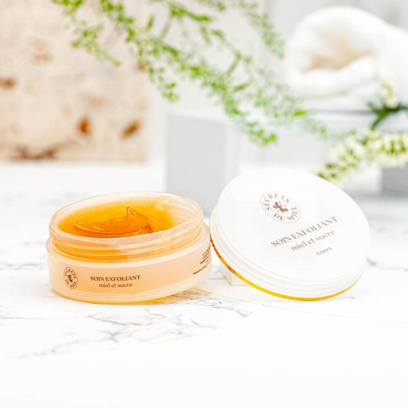 Ce Soin Exfoliant Miel et Sucre associe les propriétés nourrissantes et adoucissantes du miel d’Eucalyptus à l’action exfoliante du Sucre pour une peau douce et soyeuse :