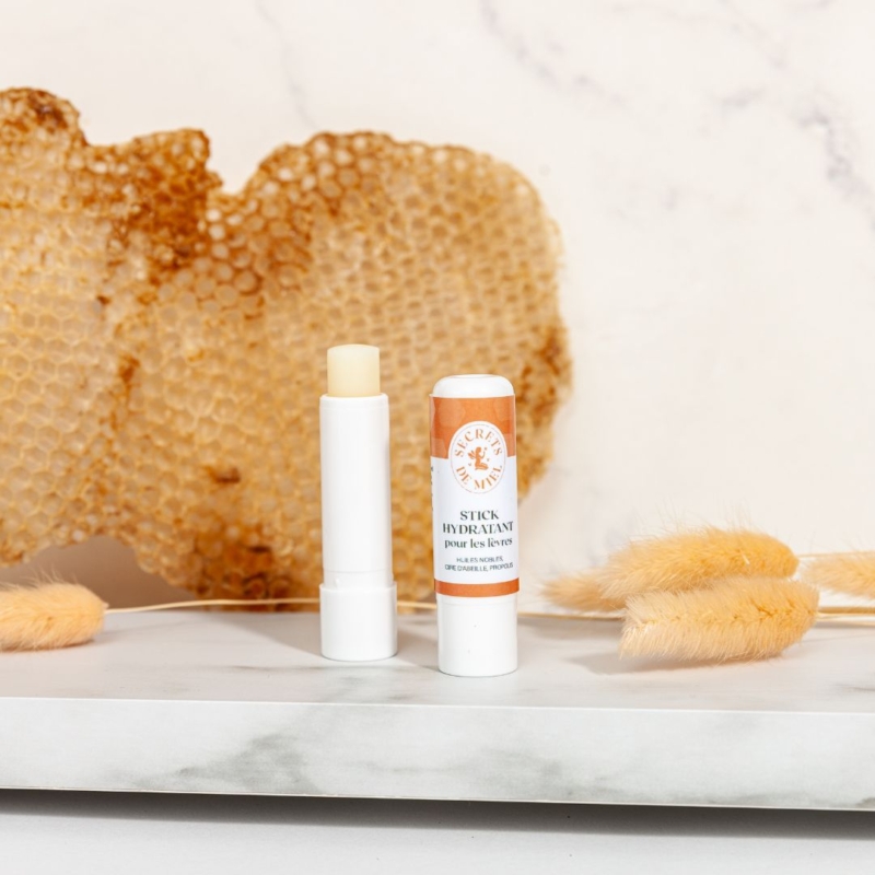 - Extrait de Propolis : apaise et cicatrise, idéale pour réparer les lèvres abîmées.