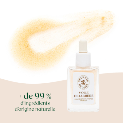 Le Voile de Lumière est formulé avec plus de 99% d’ingrédients d’origine naturelle. Les % restants assurent l’innocuité, la stabilité et la sensorialité du produit.